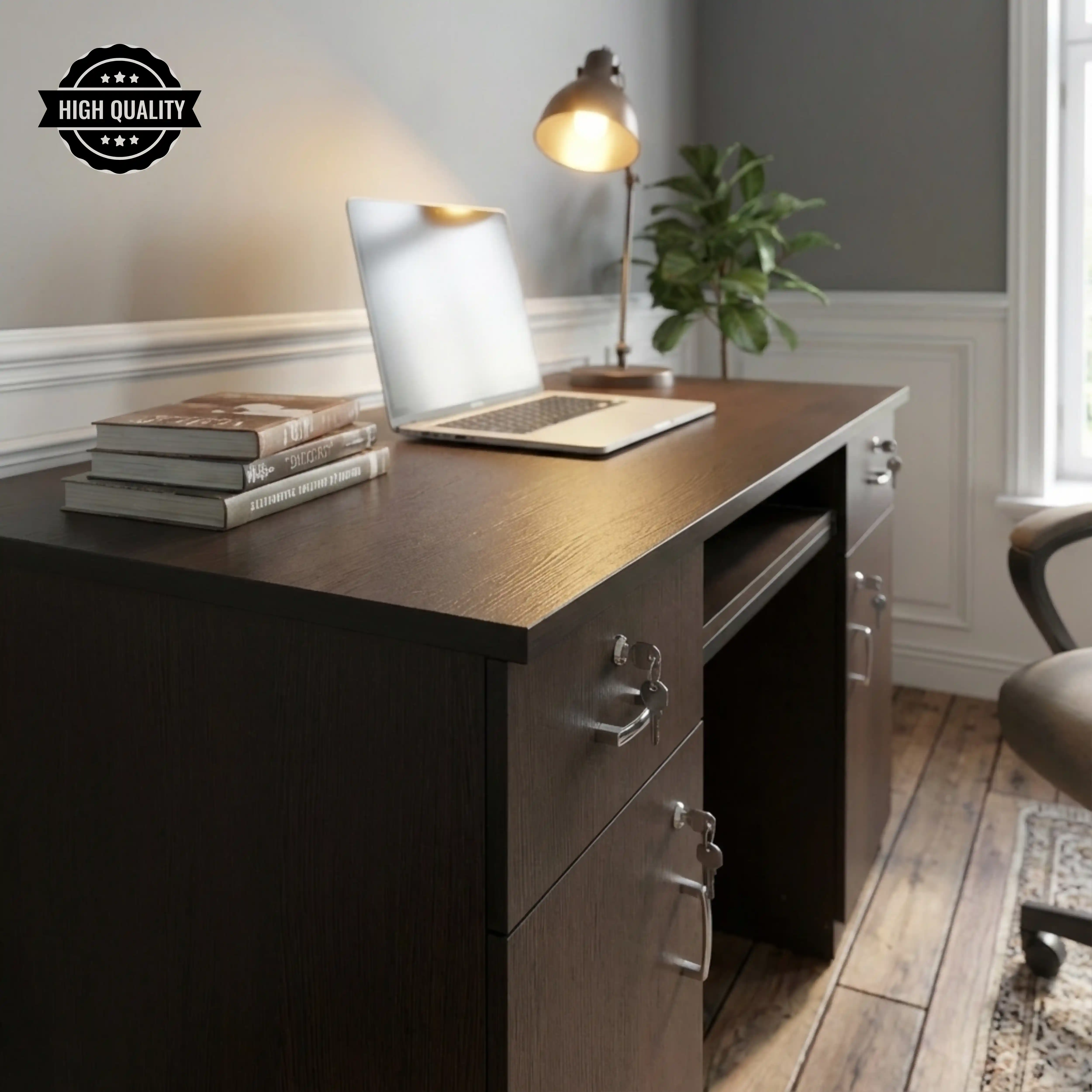 4 Feet Premium Office Table With Chest Drawer