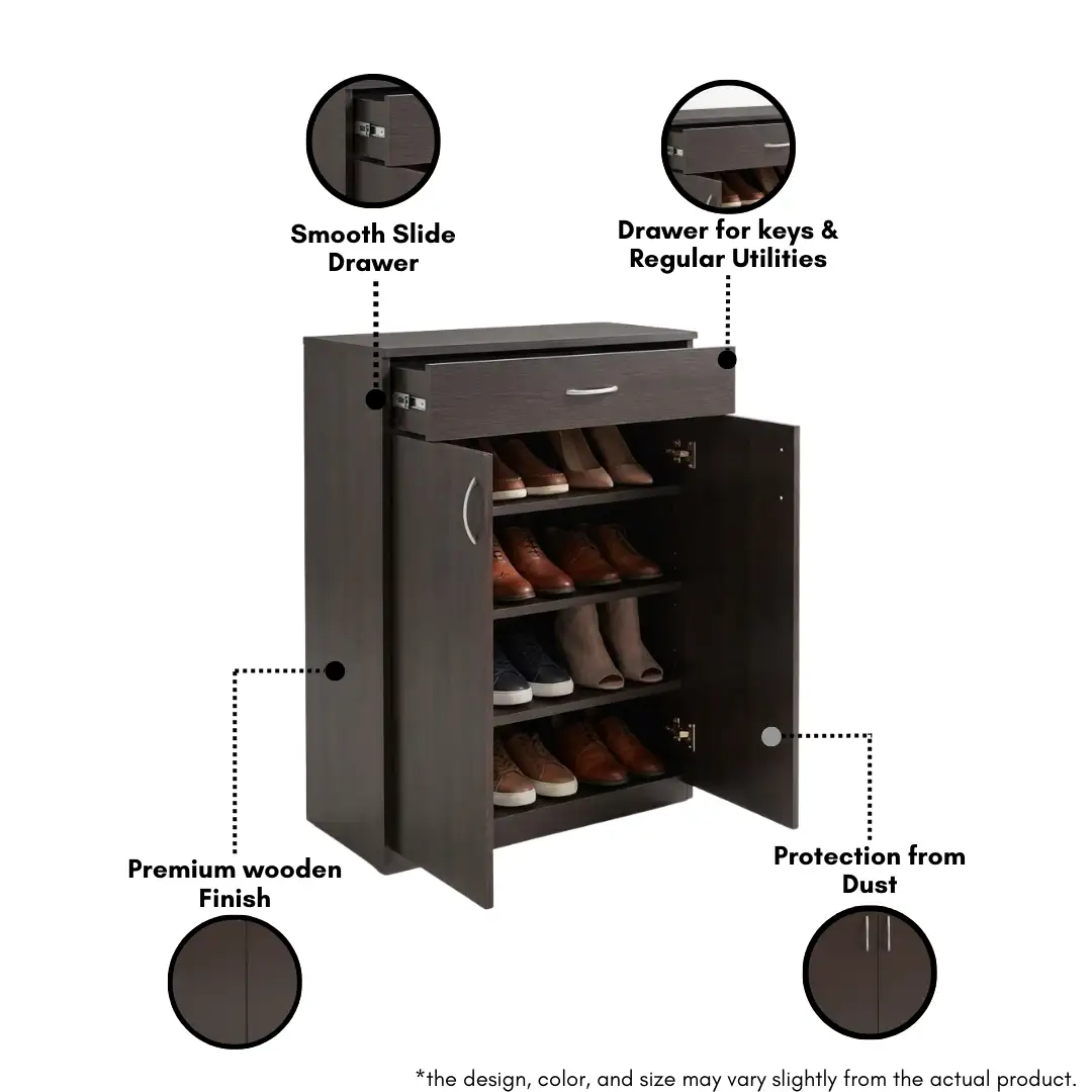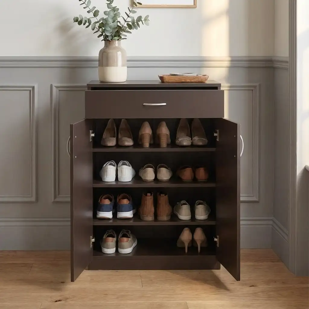Wooden Shoe Rack With Drawer