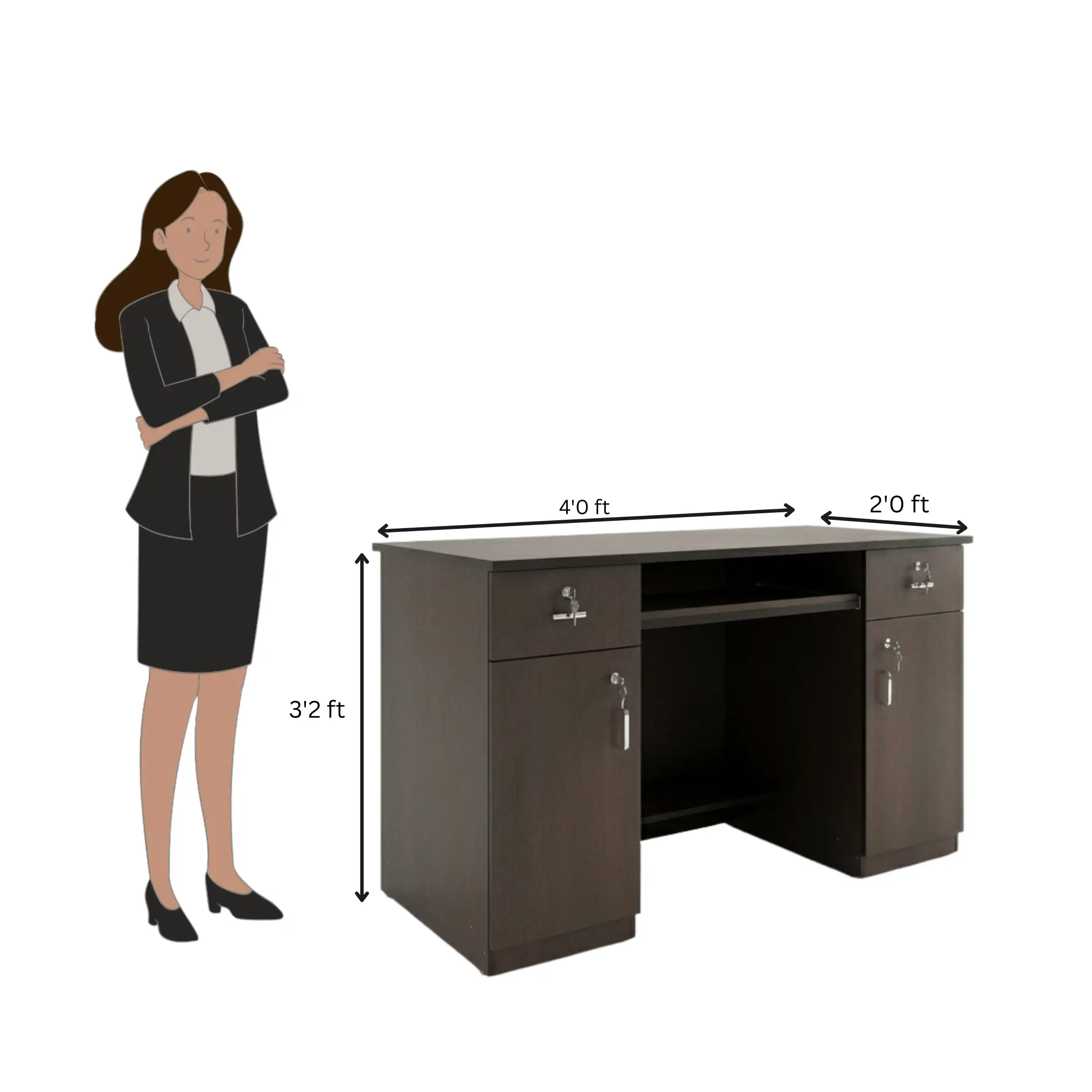 4 Feet Premium Office Table With Chest Drawer